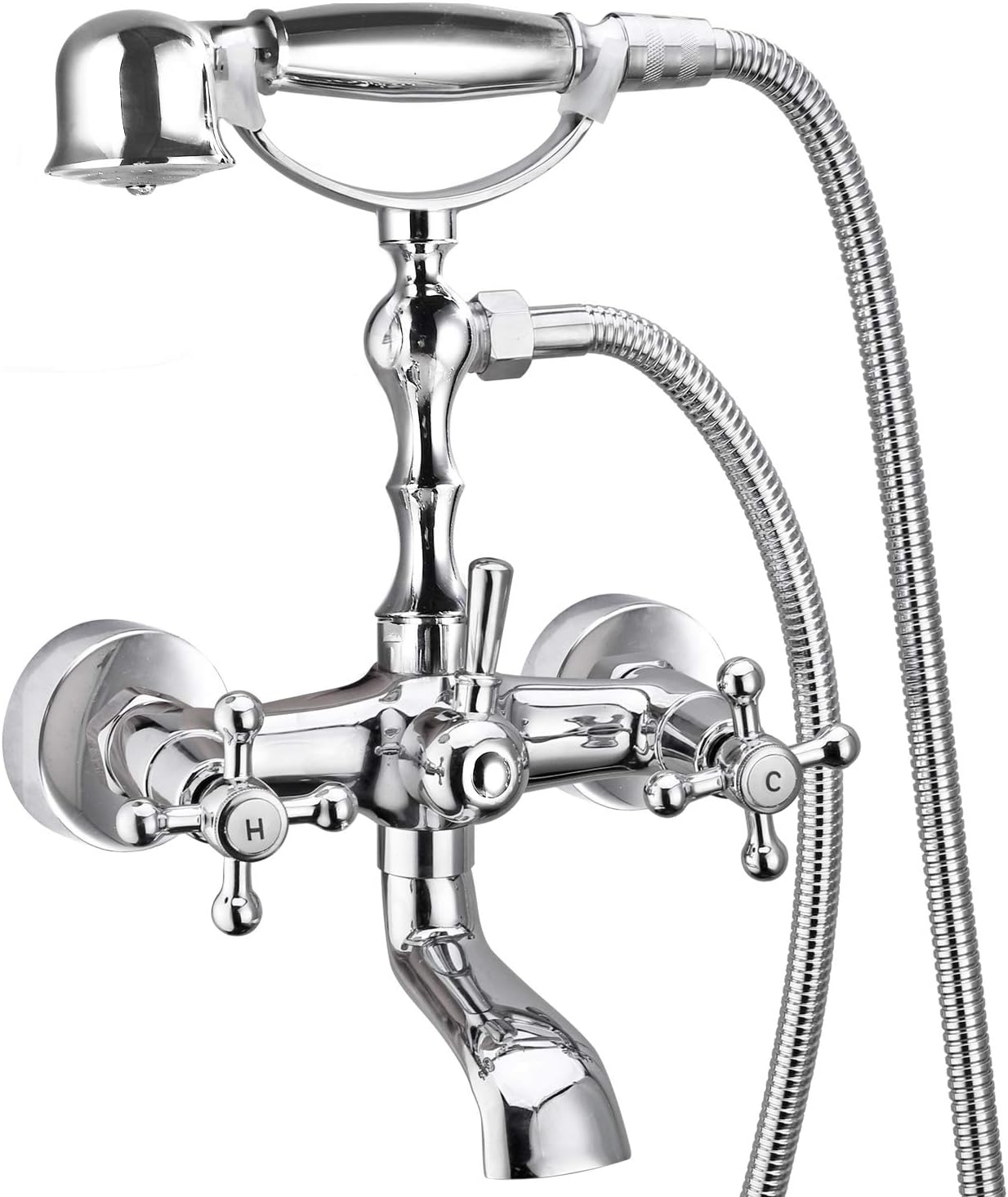 Get it as soon as wed, mar 31. Look for bathtub faucets with shower systems so you can have the best of both worlds. $30.00 coupon applied at checkout. $15.00 coupon applied at checkout. Aolemi wall mount antique brass bathtub faucet with hand shower sprayer bathroom tub faucet double cross handle telephone shaped handheld sprayer shower set mixer tap vintage.